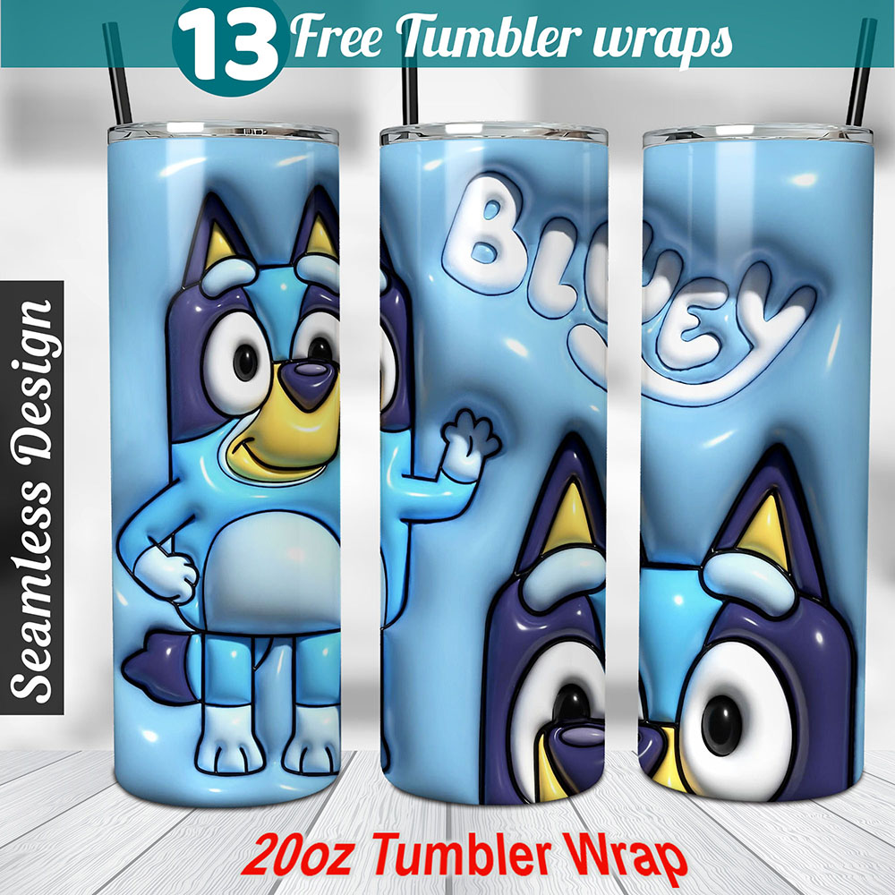 Inflated Bluey Tumbler wrap for 20oz skinny tumbler Sublimation Design