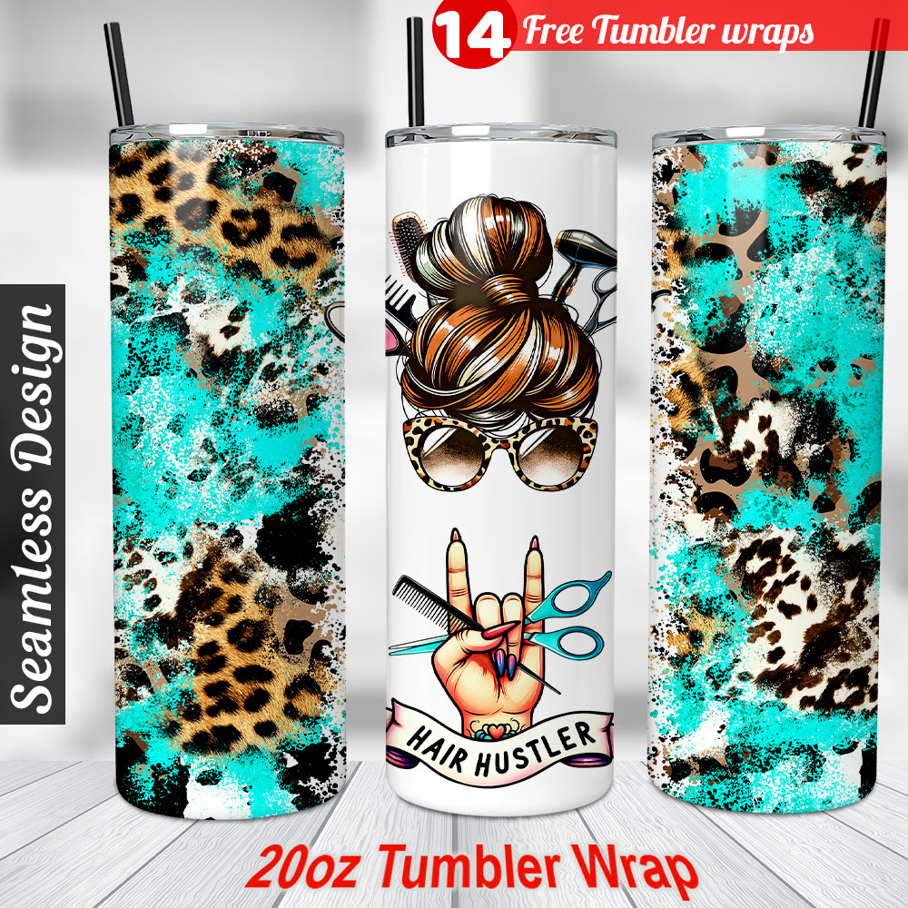 Hair Hustler Tumbler wrap Barber 20 oz tumbler Sublimation Design