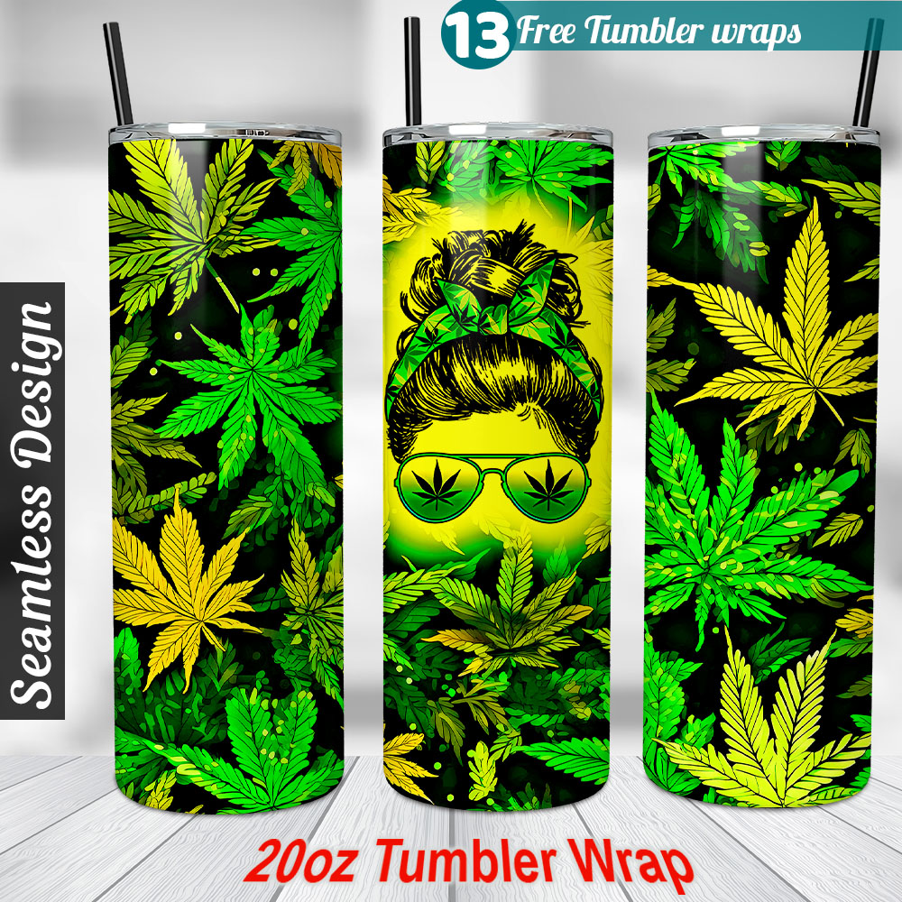 Marijuana Stoner Girl Tumbler wrap Cannabis 20 oz skinny tumbler Sublimation Design