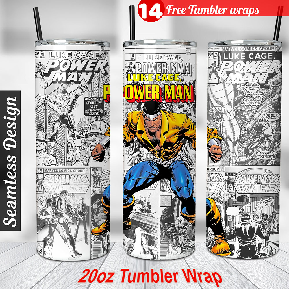 20oz Power Man Tumbler wrap png | Marvel comics Luke Cage Power Man sublimation tumbler wraps in High quality PNG Digital Downloads.