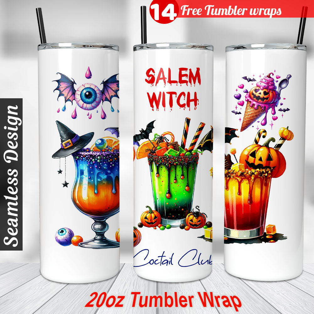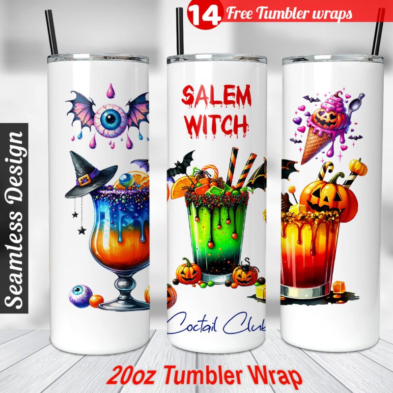 20 oz Halloween Tumbler wrap png | Salem Witch Halloween sublimation tumbler wraps in High quality png.
