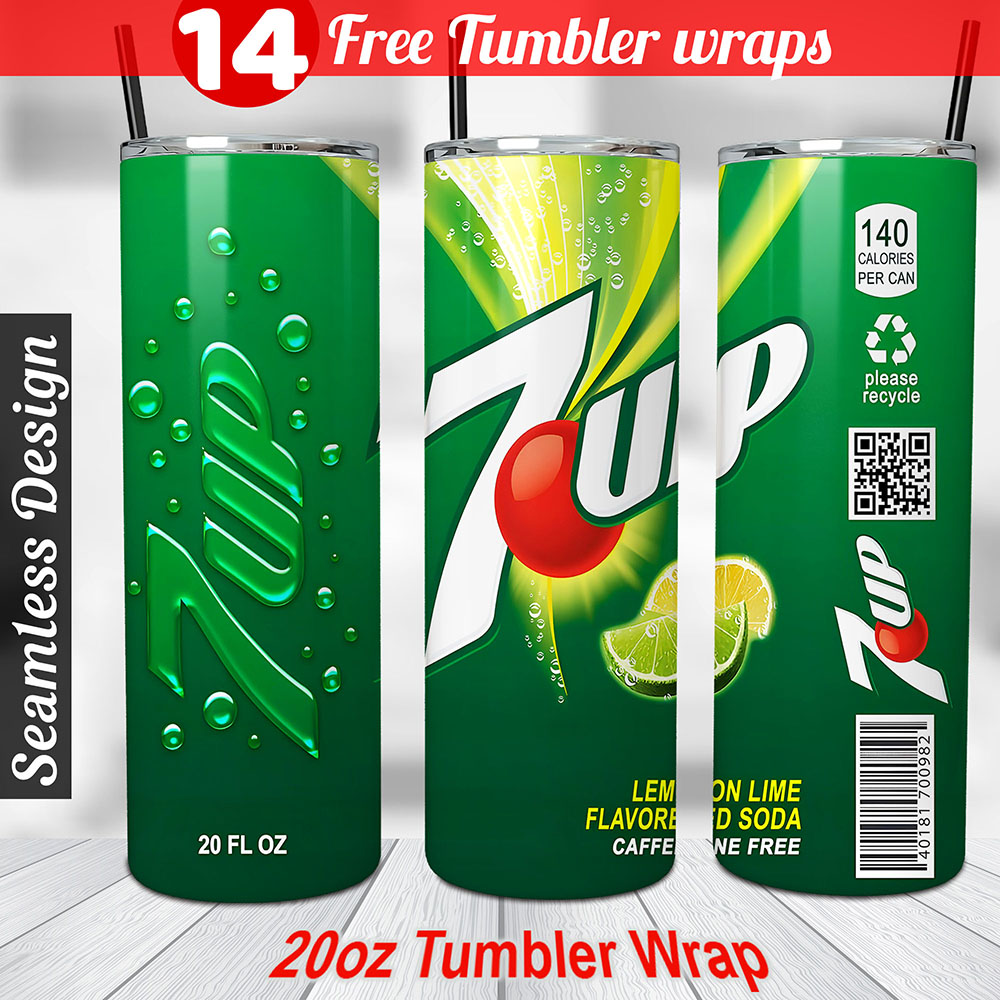 Seven UP Can Tumbler wrap for 20oz skinny tumbler Sublimation Design