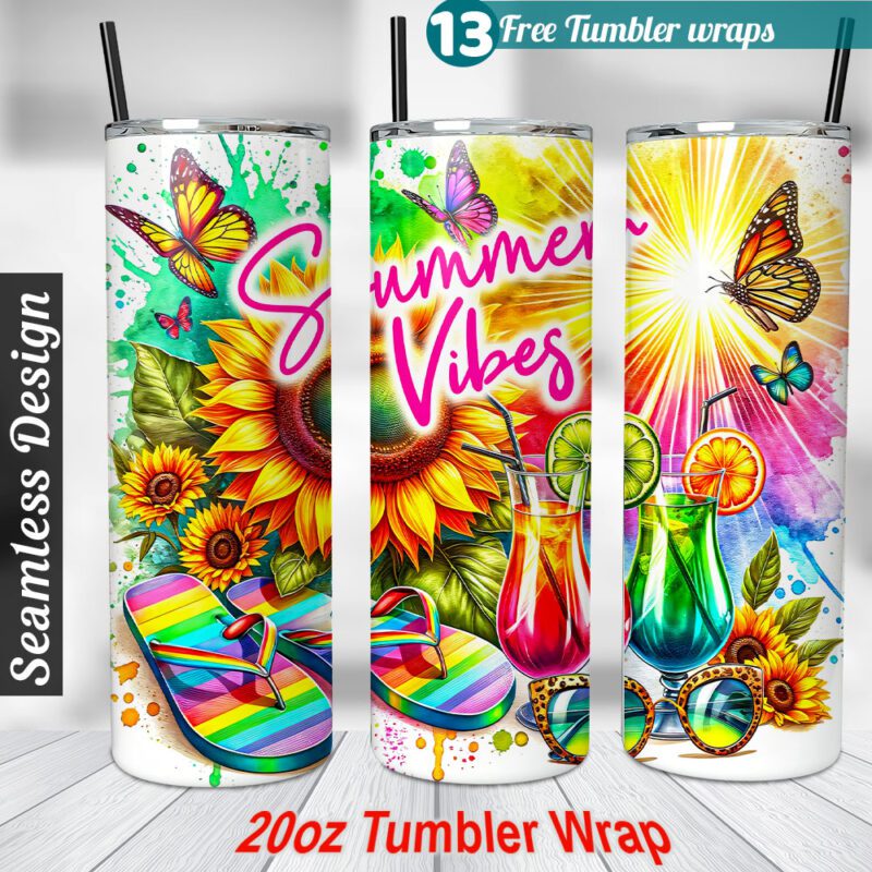 20 oz Summer Vibes tumbler wrap png | sublimation tumbler designs in High quality PNG Digital Downloads.