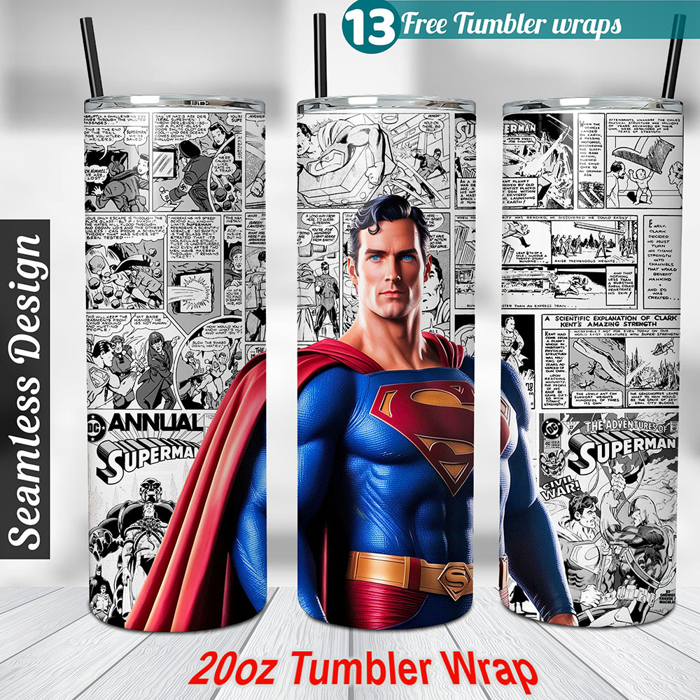 Marvel Comic Superman Tumbler wrap png | Super Hero Cartoon sublimation tumbler wraps in High quality PNG Digital Downloads.