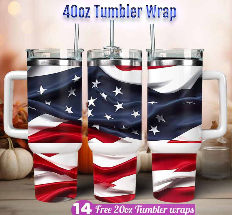 Digital Download 40 oz US Flag tumbler wrap png | American Flag sublimation tumbler designs in High quality PNG.
